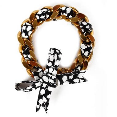 Le surnom Pedro a été attribué à Stéphanie Allerme par ses amis, en hommage à Pierre Richard et à sa légendaire maladresse. Le nom de la jolie marque de bijoux « Ma Demoiselle Pierre » prend alors tout son sens. Journaliste de formation, Stéphanie a décidé de changer de carrière pour se consacrer à sa passion et a lancé sa marque de bijoux haute fantaisie au printemps 2010. Pour elle, les bijoux sont « des liens que l’on offre, ou que l’on s’offre, des gages de bonheur, d’amour ou d’amitié, sorte de gris-gris chic auxquels on s’attache indéfectiblement ». Les bijoux de cette saison sont réalisés en maille gourmette, fils de coton colorés, chaînes, liberty et rubans. J’apprécie particulièrement l’aspect modulable des bracelets : les rubans se changent selon vos envies, vos tenues, ou s’accumulent au côté des gourmettes. Un joli cadeau à offrir à une personne qui compte pour vous, à Noël ou toute autre occasion…