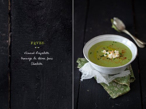 Le velouté de fèves et chèvre frais d’Enila, appétissant après une journée de grand froid…