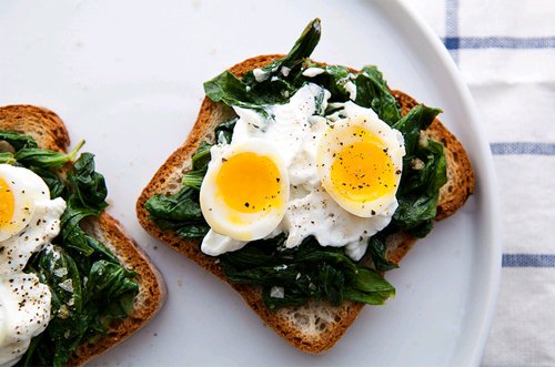 La recette parue sur le blog The Year in Food m’a donné très envie de me faire des tartines œufs/épinards, pourquoi pour le brunch du dimanche ? Une idée très simple à réaliser et idéal avec une salade de légumes.