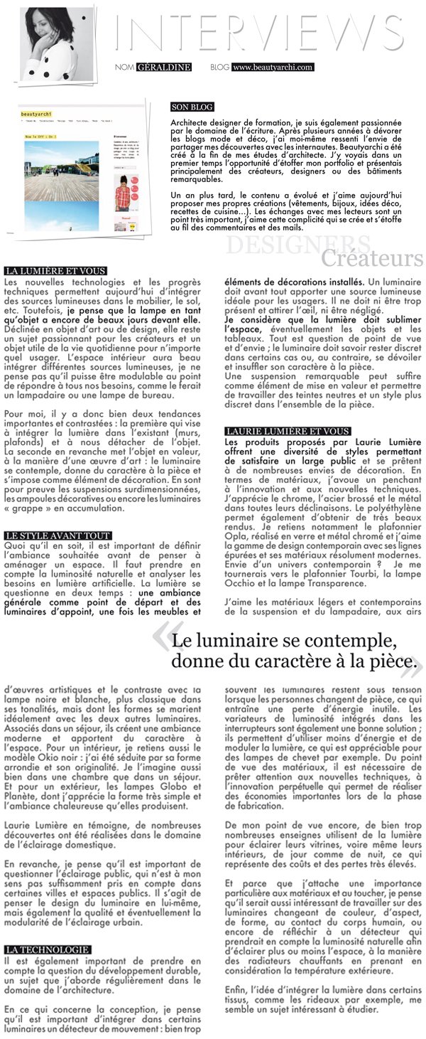 Je suis absolument ravie de pouvoir vous parler d’une collaboration qui s’est faite il y a de ça plusieurs semaines, avec l’enseigne Laurie Lumière. J’ai été contactée pour participer à l’élaboration d’un livre blanc, avec d’autres blogueurs déco & design… L’occasion de découvrir les luminaires de l’enseigne, mais également de réfléchir sur l’importance de la lumière, sa valorisation, sa mise en oeuvre. Je vous invite à découvrir mon interview ci-dessous et celles des autres participants dans le livre blanc.
