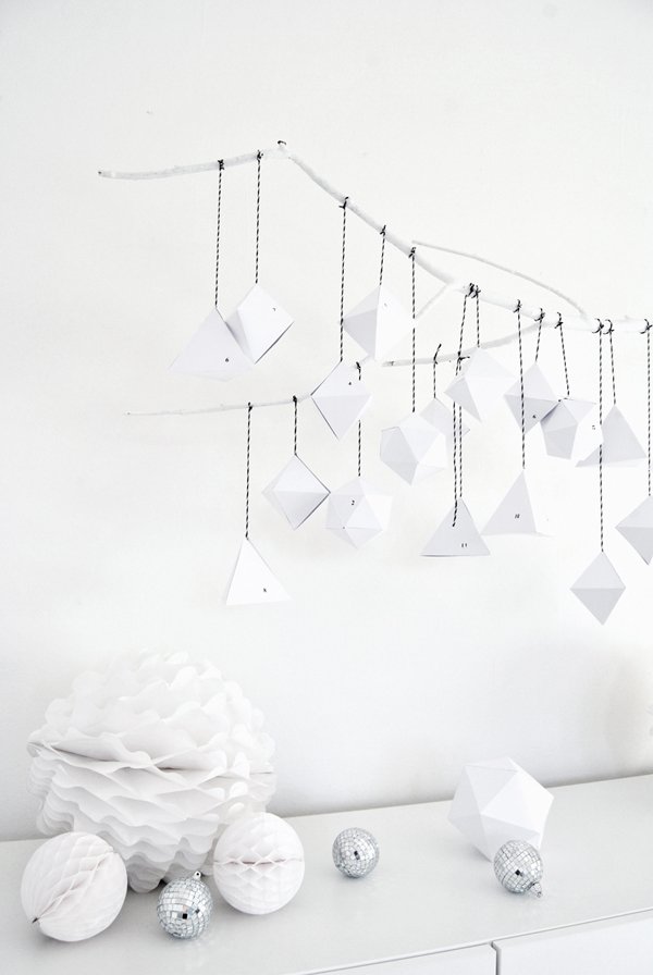Les DIY de calendriers de l’avent vont bon train en ce moment, j’ai retenu celui du blog A Merry Mishap, blanc, épuré, graphique et facile à réaliser.