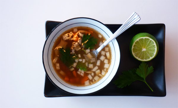 Je vous avais promis une seconde recette à base de litchis… les voici donc dans leur version salée ! Et oui, j’ai été surprise d’apprendre qu’ils se mariaient très bien avec les volailles, les crevettes, alors pourquoi pas avec les noix ? Je me suis lancée ce week-end dans ma cuisine pour une expérimentation et j’ai été agréablement surprise ! Je me suis dit qu’après le passage neigeux et le froid de ces derniers jours, un bon petit bouillon vous ferait du bien ! C’est parti, direction les fourneaux…
