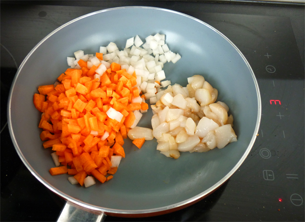 Étape 3 : Faîtes chauffer rapidement à la poêle la carotte, le navet et les noix (les litchis également éventuellement).