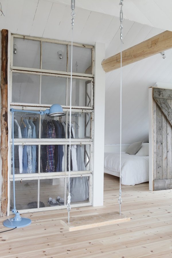 Une balançoire dans sa chambre ? Étonnant mais amusant… On trouve des idées merveilleuses sur le blog Regards et Maisons !