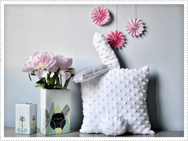 J’ai tout simplement craqué devant le DIY coussin – lapin sur le blog By Plou ! La matière du tissu est tout simplement parfaite…