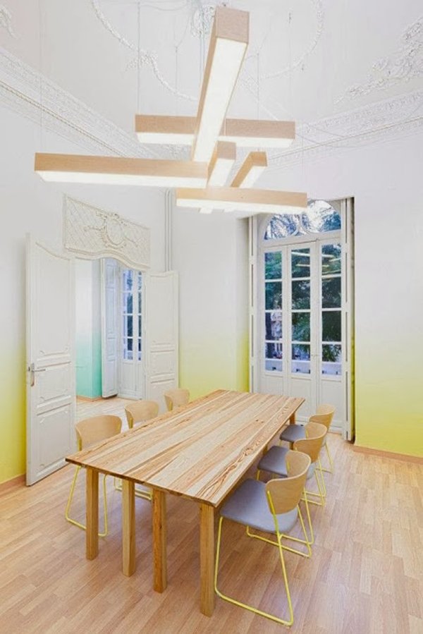 Sur le blog The Foxtrotter, j’ai aimé la thématique du Tie & Dye version déco. Un subtil dégradé de jaune pour donner du caractère à l’espace…