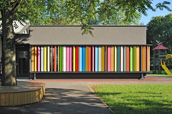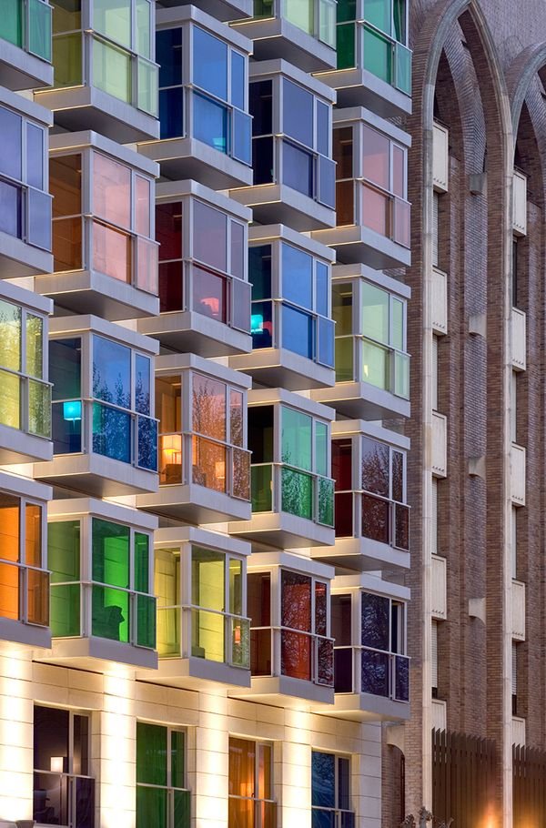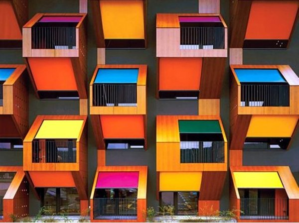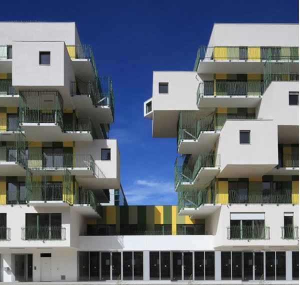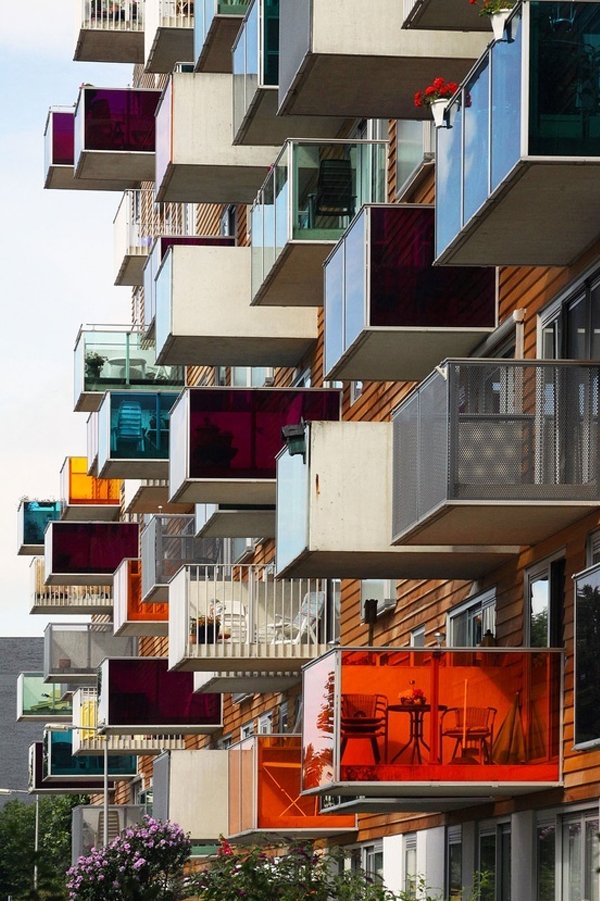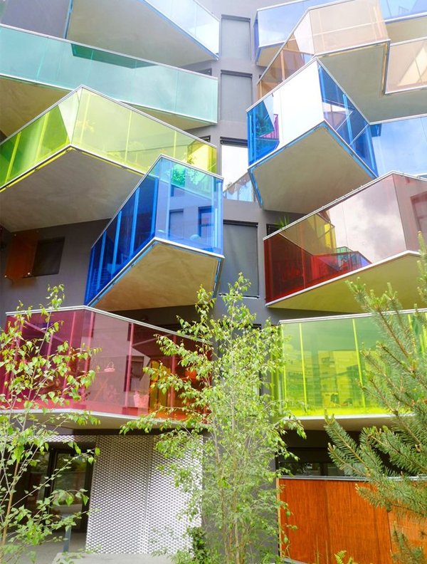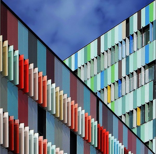 C’est en poursuivant mes études en design pour l’architecture que les perspectives se sont ouvertes. Nous avons appris plus spécifiquement à utiliser les couleurs et jouer avec les nuances. Non, un bâtiment n’est pas obligé de revêtir sa triste façade de béton gris. Non, il n’y a pas forcément une seule couleur, ou une seule gamme de couleurs. Les architectes s’amusent de plus en plus et osent. D’abord à l’étranger, où de très belles réalisations figurent dans les pays nordiques, mais de plus en plus en France. Et tout comme en matière de vêtement, j’aime l’idée de mixer les couleurs, les motifs, de ne pas céder à la facilité, de prendre des risques. Je vous ai sélectionné plusieurs références, puisées ici et là, en France ou à l’étranger, pour vous montrer l’étendu des possibles et vous faire découvrir je l’espère une autre vision de l’architecture.