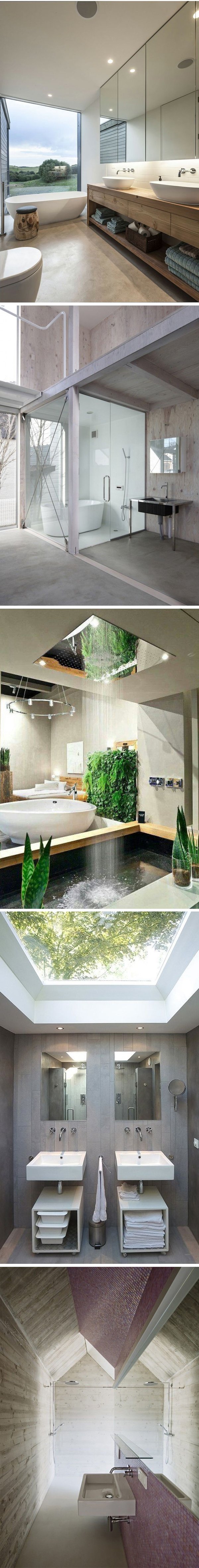 Enfin, je me suis attardée sur quelques exemples de salles de bain atypiques, que ce soit pour leurs vues, leurs aménagements ou leurs matériaux…