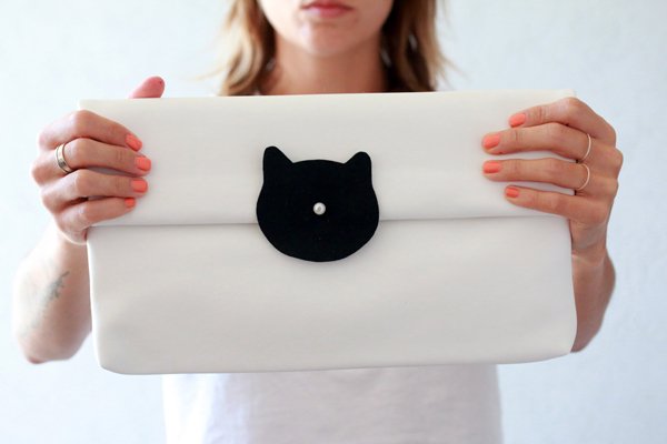 Sur le blog Sp4nk j’ai adoré ce DIY chat : d’abord de jolies coudières sur une chemise, puis cette seconde version pour customiser une petite pochette…
