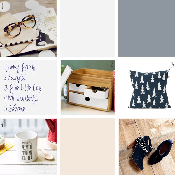 Lunettes, Jimmy Fairly x Make my Lemonade / Boîte Kyoto, Sengtai /Coussin, Fine Little Day / Mug « If you can dream, you can do it », Mr Wonderful / Bottines Jagger, Sézane