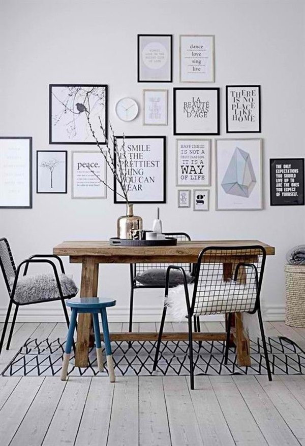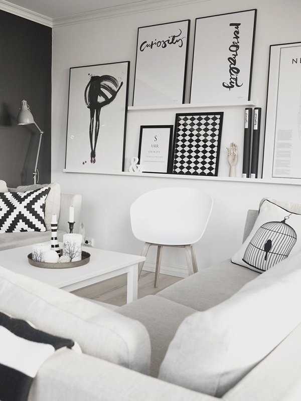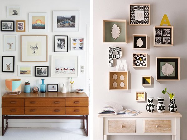 De retour pour le Home Challenge ! J’étais malheureusement passée à côté de la dernière édition, prise par le temps (vous aussi vous avez cette impression de courir sans cesse ?). Cette fois-ci le thème fait dans le détail, puisque justement nous nous intéressons au détail qui fait la différence dans la déco. J’y ai réfléchi un certain temps, plusieurs idées me sont passées par la tête (je vous en parlerai une prochaine fois) et j’ai finalement eu envie de me tourner vers l’accumulation de cadres. Il y a encore quelques années, on affichait une photo de son amoureux, un souvenir de vacances ou encore une belle affiche dans un cadre, sur un mur à peine habillé. Aujourd’hui la tendance des cadres explose. L’idée ? Les accumuler, jouer avec leur disposition, créer un effet graphique par le biais des couleurs (souvent du noir et du blanc) et des dimensions. On s’amuse à insérer des citations, de belles lettres de typographie, des chiffres… pour finalement habiller un mur et donner à la pièce une nouvelle ambiance. Souvent installés au dessus d’un canapé, les cadres se multiplient. Cette accumulation peut finalement être étendue à l’infini, renouvelée régulièrement.