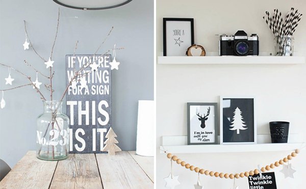 Du côté de Shake my Blog j’ai retenu ce bel intérieur en gris et blanc décoré sobrement pour les fêtes. Voilà qui nous change des traditionnels rouge et vert ! Mais dès qu’il y a une inspiration scandinave, vous savez ce que c’est, je ne résiste pas !
