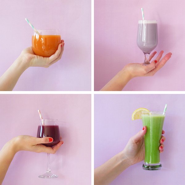 Une centrifugeuse… voilà des années que j’avais envie d’en avoir une ! Pouvoir transformer tous les fruits, bien entendu, mais aussi et surtout, tous les légumes en jus, c’est vraiment incroyable. Tomates, concombres, épinards, avocat, salade, carottes, tout y passe ! Avec le retour des beaux jours on a également envie de manger plus sain, plus frais, plus léger. Alors rien de tel qu’un petit jus pour démarrer la journée, se régaler au goûter ou pour se faire plaisir le soir devant un bon film. Je vous ai concocté quatre recettes, mais il vous suffira de taper « smoothie » dans l’onglet recherche de mon blog pour trouver d’autres idées gourmandes…