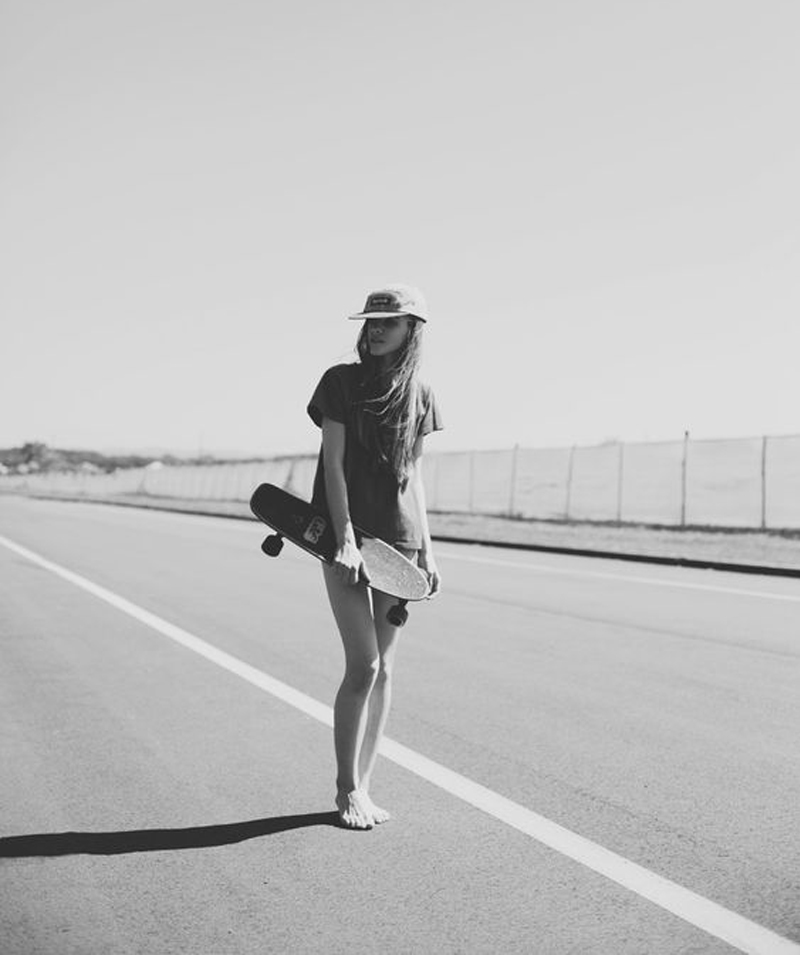 Je vous en parlerai dans un prochain article, mais j’ai récemment eu la chance de recevoir un skateboard. Pas un modèle comme j’en avais eu à l’époque, mais une planche plus courte, plus étroite. Je l’ai d’abord essayé dans mon appartement, en me tenant au mur, pas très téméraire… et je me suis dit que ça ne me ressemblait pas. J’ai sauté dans ma voiture, je suis partie en direction de la plage, j’ai posé mon skate sur la piste cyclable et j’y suis allée. Franco. J’étais un peu déséquilibrée sur les premiers mètres, puis l’assurance est venue, ou revenue. J’ai passé plus de deux heures à déambuler le long de la plage, à regarder la mer et à ressentir cette incroyable sensation de liberté que seuls les sports de glisse peuvent nous procurer. Physiquement, je n’ai rien ressenti de particulier dans les jambes, à part quelques fourmillements de peur au tout début, mais le lendemain, j’avais de belles courbatures dans la jambe arrière au niveau du mollet et de l’adducteur, ainsi que de belles ampoules sous le pied. Mais peu importe, comparé au bonheur ressenti, cela en valait largement la peine. Cette balade sur la plage a été libératrice, quel bonheur de se laisser porter, en écoutant sa musique préférée le long des plages. J’avais oublié cette sensation de glisse et de liberté, je suis redevenue une enfant sur son jouet ! Autant vous dire que j’y suis retournée plusieurs fois depuis et que je compte bien m’améliorer. J’aime cet univers, j’avais envie de partager avec vous cette expérience et ces quelques images qui m’inspirent et qui nous montrent que oui, le skate, c’est aussi pour les filles. Et qu’il n’y a pas d’âge pour s’y mettre finalement.