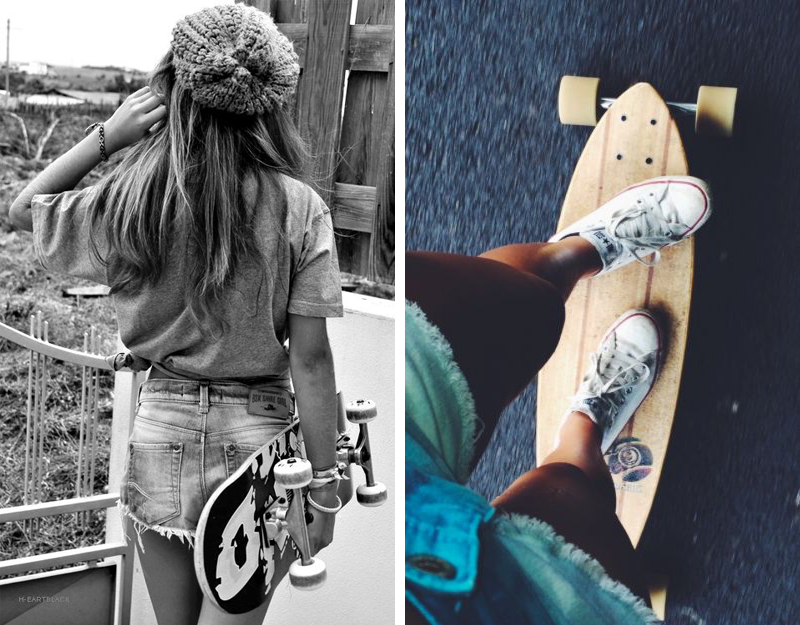 Je ne crois pas avoir déjà abordé le sujet par ici, mais il y a bien longtemps (environ 15 ans !) je faisais un peu de skateboard… je n’allais pas sur les rampes, je ne faisais pas de figures (ou si peu), je l’utilisais juste comme ça, pour me déplacer, parce que je trouvais ça si cool… comme le roller, j’ai arrêté d’en faire après le lycée, mais ça ne m’a pas empêché de continuer à aimer les sports de glisse. Je suis une dingue de snowboard, je faisais beaucoup de bodyboard quand j’étais petite et je me suis un peu essayée à la planche à voile, au surf ou encore au paddle.