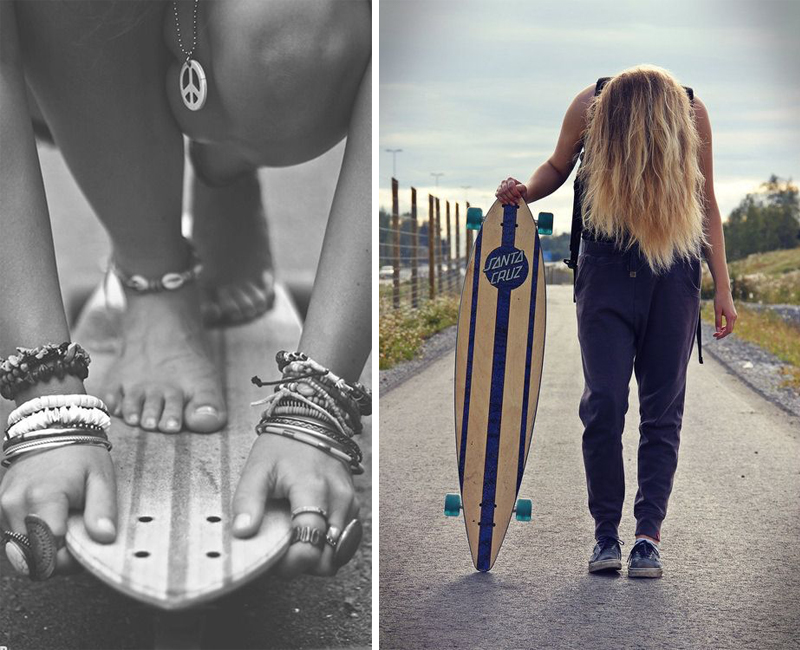 Je ne crois pas avoir déjà abordé le sujet par ici, mais il y a bien longtemps (environ 15 ans !) je faisais un peu de skateboard… je n’allais pas sur les rampes, je ne faisais pas de figures (ou si peu), je l’utilisais juste comme ça, pour me déplacer, parce que je trouvais ça si cool… comme le roller, j’ai arrêté d’en faire après le lycée, mais ça ne m’a pas empêché de continuer à aimer les sports de glisse. Je suis une dingue de snowboard, je faisais beaucoup de bodyboard quand j’étais petite et je me suis un peu essayée à la planche à voile, au surf ou encore au paddle.