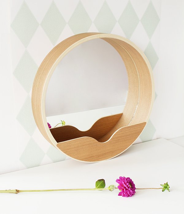 Je vous présente aujourd’hui quelques nouveautés, issues du site ProduitInterieurBrut.com, qui ont rejoint mon intérieur. Vous y trouverez plusieurs styles : industriel, bohème et scandinave. Vous l’aurez compris, c’est pour cette dernière catégorie que mon cœur balance ! Le style très épuré, le graphisme, les couleurs, cet univers me parle réellement et me fait me sentir véritablement chez moi. J’avais également envie de craquer pour un beau canapé scandinave ou encore une table basse, toutefois, étant un peu dans l’incertitude concernant mon logement (déménagera, ne déménagera pas ?), j’ai préféré me diriger vers de petits objets. J’ai complètement caqué devant ce miroir circulaire : la teinte du bois, les formes très douces et surtout son petit compartiment à l’avant, judicieusement pensé pour y glisser ses clés, ses bijoux ou son rouge à lèvres.