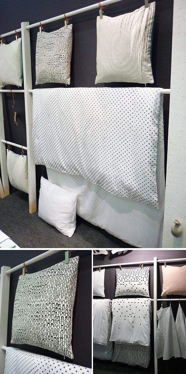 Gros coup de coeur pour cette marque, qui a d’ailleurs été récompensée dans le cadre du jury Les Découvertes par Deco Design. J’ai adoré le linge de lit à pois, tout comme celui avec les petites croix. Le noir et blanc côtoyait les couleurs douces, comme le rose pâle et l’ensemble était vraiment très harmonieux.