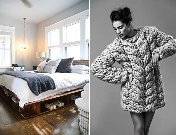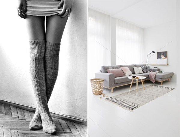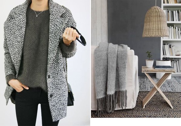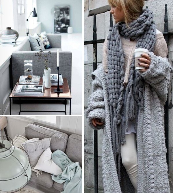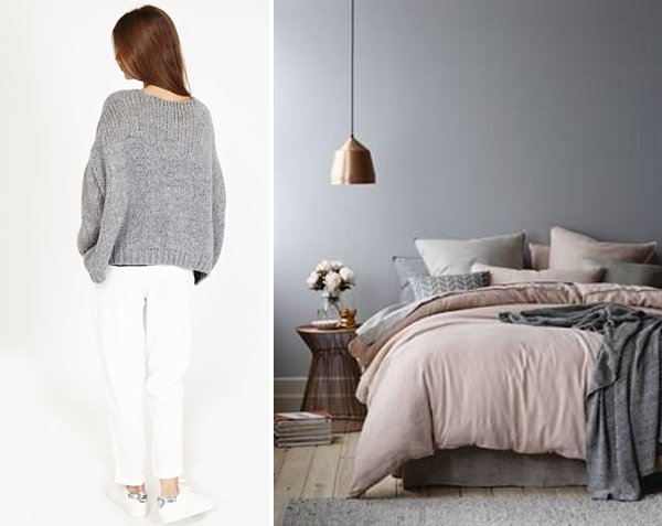 Les températures commencent à chuter lentement et l’envie de se lover dans des matières douillettes et confortables se fait ressentir… aussi bien dans nos intérieurs, que dans nos vêtements finalement. En parlant de la récupération sportive il y a quelques temps, j’avais mêlé le sport à la décoration. Cette semaine, j’associe deux thématiques, qui s’entrecroisent facilement et qui sont très proches l’une de l’autre, à savoir la mode et la déco. Les matières, les teintes, les associations, il y a tant de similitude entre les deux… Je vous propose aujourd’hui une sélection sur une note de gris. A cette période de l’année, j’adore m’habiller dans des camaïeux de gris, bien loin d’être ennuyeux, s’ils savent être décalés ou du moins, s’ils mélangent les matières. En terme de déco, j’aime particulièrement l’association du blanc, du bois et du rose avec cette couleur. De quoi la rendre encore plus chaleureuse et délicate.