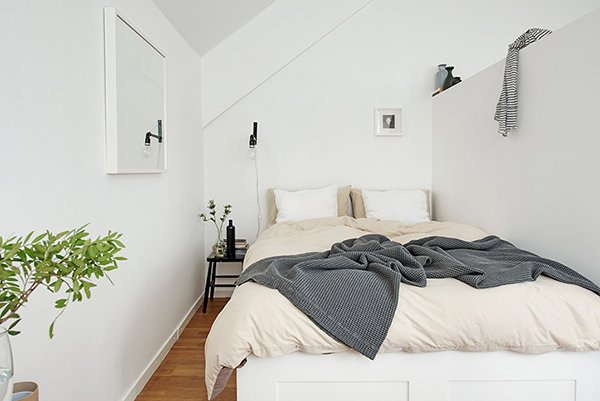Chez La Petite Fabrique de Rêves je me suis attardée sur cet appartement, qui est fait exactement comme le mien ! A savoir qu’une cloison sépare le séjour de la chambre, mais sans porte, les deux espaces étant parallèles. J’aime cet espace, cette facilité à circuler, cette sensation de liberté. L’esprit loft me correspond totalement.
