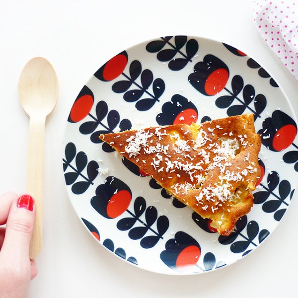 Pour la première recette, j’ai testé le clafoutis aux pommes. Pour cela, rien de plus simple, il vous faut 70g d’Okara, 50g de farine d’avoine, 60g de farine de riz, 1/2 sachet de levure, 1 cuillère à café de cannelle, 3 œufs bio, 10cl de lait végétal, 2 pommes et 3 cuillères à soupe de sirop de datte, de miel ou d’agave.