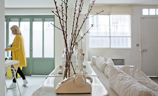 Coup de coeur chez Inside Closet (comme à chacun de ses articles !) pour ses magnifiques photos, j’ai adoré le style de cet appartement, la luminosité, la grande verrière, les touches de couleurs, ce téléphone rétro, identique à celui qui était chez mes parents…