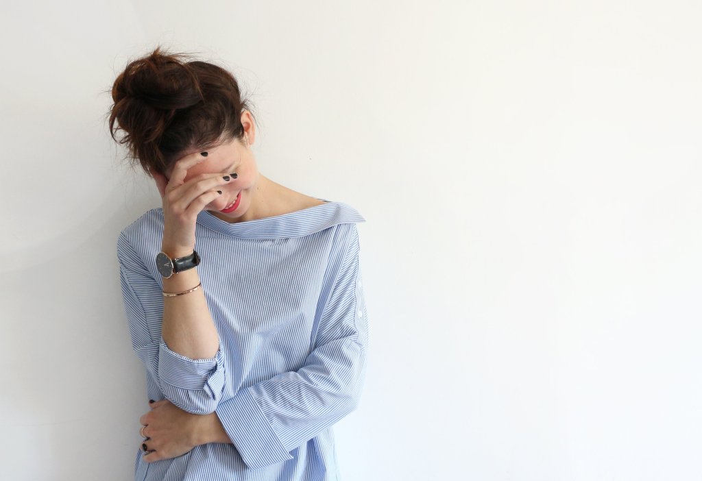 J’ai tendance à faire toujours la même tête sur mes photos, mais allez savoir pourquoi, lors de cette séance, je suis passée par plusieurs stades : souriante, pensive, nostalgique, éclat de rire… et ça m’a amusée de jouer avec les émotions.