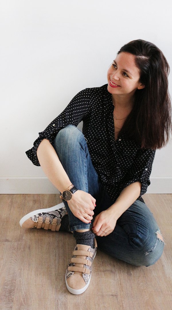 Pour exemple, cette dernière paire, arrivée la semaine dernière et que je ne quitte plus. Finalement, elle réunit un peu tous ces éléments « étranges » (couleur, texture, fermeture) mais je les adore ! Je ne connais pas vos habitudes, mais me concernant, chaque matin, je commence avant tout par choisir mes chaussures (en fonction de la météo, de mes envies, de mon confort) et ensuite, j’assortis le reste (jean ou jupe, puis tshirt/chemise, blazer et enfin manteau). Ca ne me pose aucun problème d’être habillée de manière très basique si mes chaussures apportent une jolie touche d’originalité, de classe ou de couleur. Rien de plus beau qu’un total look noir, gris ou bleu, avec une folie au niveau des pieds !