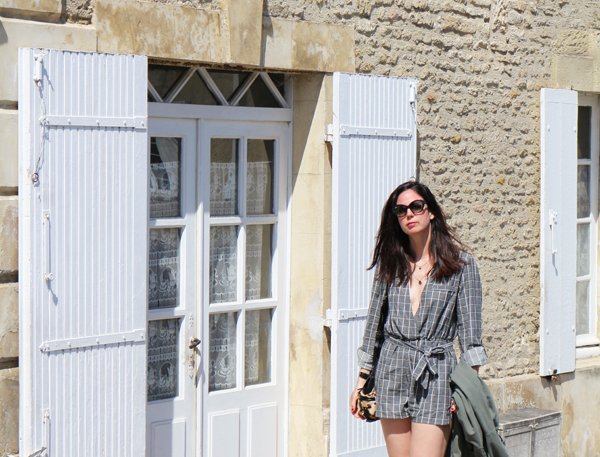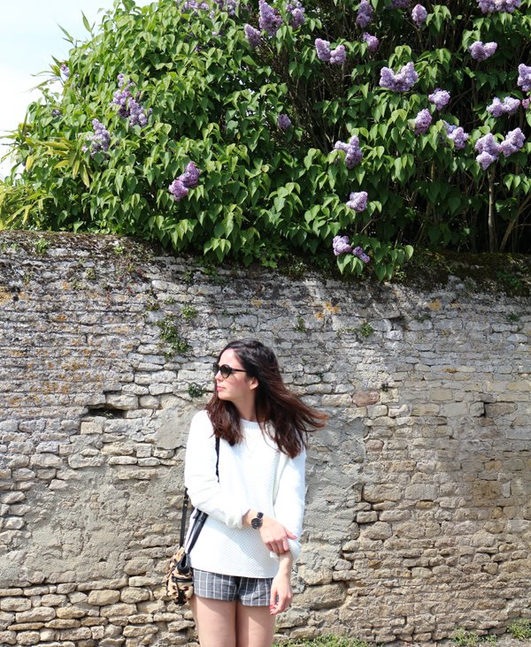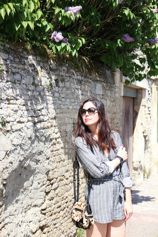 Un nouveau look aujourd’hui, avec les jambes à l’air pour la première fois de l’année ! J’ai souvent admiré les combinaisons et les combishorts, sans jamais oser en porter, mais j’ai finalement craqué récemment et je dois dire que le confort est tel, que je regrette de ne pas avoir franchi le cap avant ! Nous sommes allés nous promener dans la petite commune de Mathieu pour faire ces photos, j’aime beaucoup l’ambiance, très calme et dépaysante de ce lieu, avec cette petite impression d’être en vacances. Vous excuserez mes jambes toutes blanches, mais comme dit, elles n’ont pas encore beaucoup vu le soleil cette année ! Les températures étant un peu aléatoires, j’en ai profité pour faire l’oignon, en portant sur cette combi un pull blanc, parfait pour la saison, une veste en sweat (un vrai doudou) et un perfecto, idéal en cas de rafales et parfait pour ajouter une petite touche rock à cette tenue. Je vous laisse avec les photos.