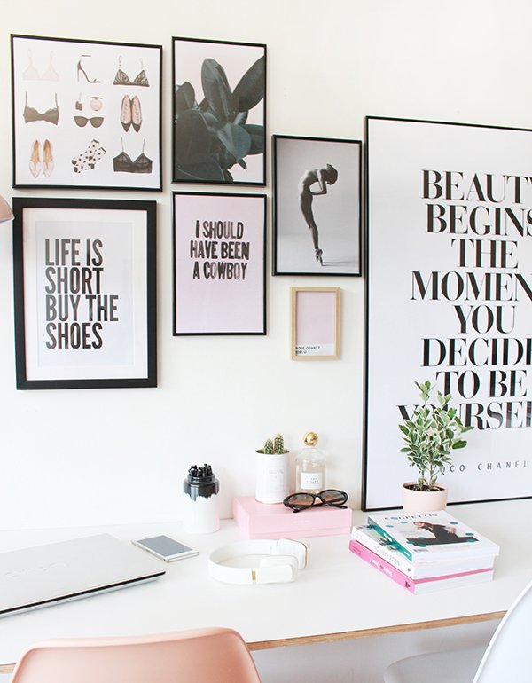 Je vous retrouve cette semaine avec un nouvel article déco. Vous connaissez mon amour pour le changement, j’adore déplacer les meubles, alterner les affiches, changer d’univers tout simplement. J’ai l’impression que ces petites modifications boostent mon quotidien, ma créativité, donnent un petit coup de frais dans mon appartement. J’avais envie d’apporter de nouvelles touches de graphisme et de couleurs aux murs et de déplacer les affiches déjà présentes dans mon entrée et dans ma chambre. J’ai renouvelé la partie bureau avec de nouveaux éléments, et comme d’habitude, c’est sur le site Juniqe que j’ai trouvé mon bonheur ! J’adore leur sélection, il y a un choix incroyable, vraiment pour tous les goûts et finalement, on peut facilement créer son mur de cadres en optant pour des formats, des couleurs et des styles complémentaires.