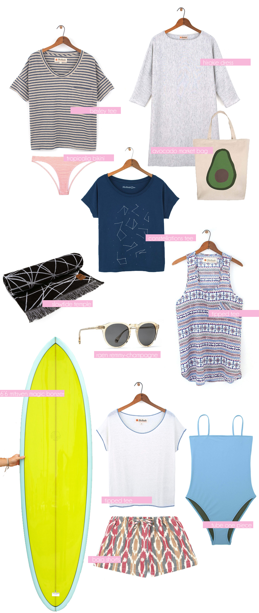tshirt // maillot de bain // robe // tote bag // tshirt // serviette de plage // lunettes de soleil // débardeur // surf // tshirt // short // maillot de bain