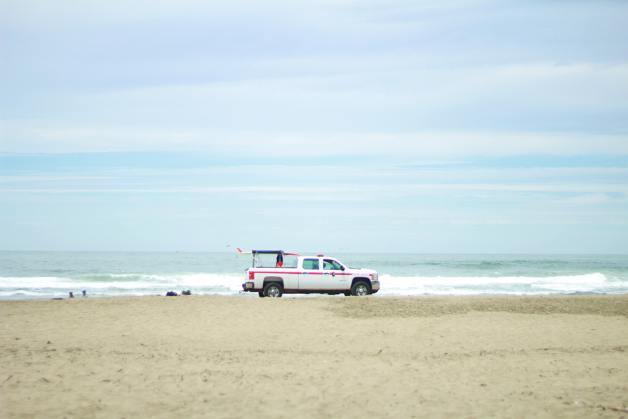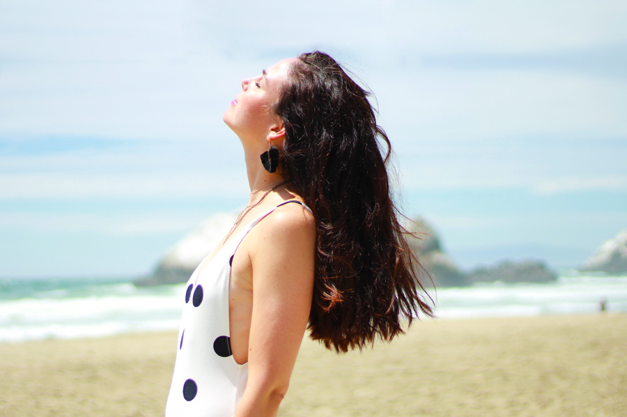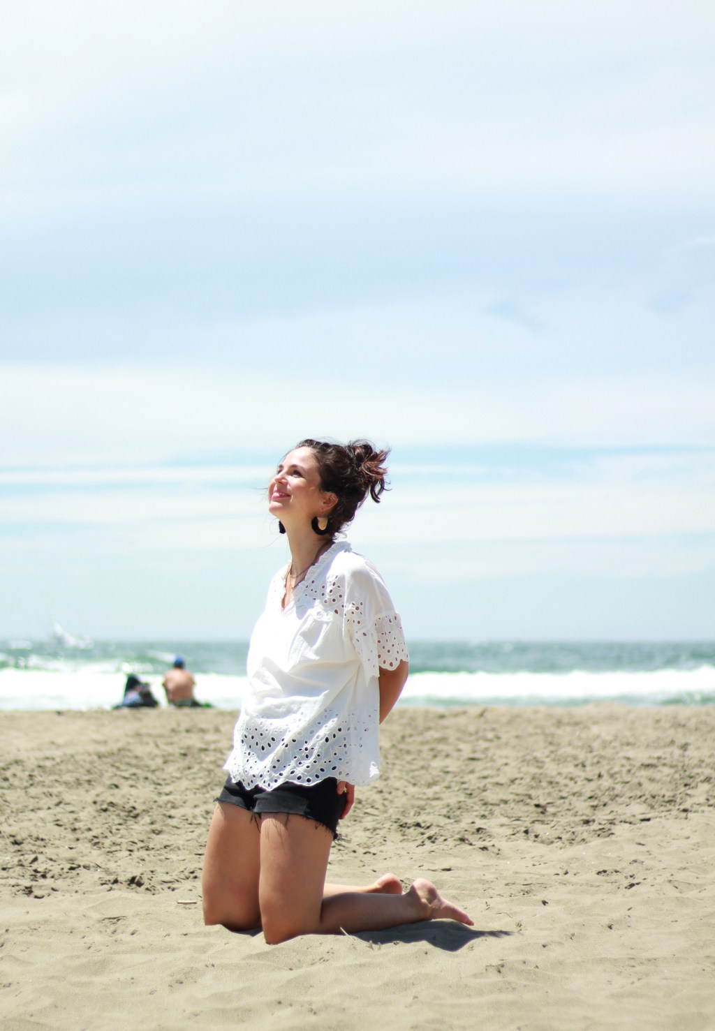 La semaine dernière, j’ai passé ma première vraie journée à la plage. Je vous avais emmené au bord de l’océan (souvenez-vous) mais ce jour-là il y avait énormément de vent, je n’avais même pas mis un pied dans l’eau. J’y étais retournée une deuxième fois pour me rendre notamment au Mollusk Surf Shop et j’avais réussi à me mettre en maillot de bain, abritée par les dunes. J’avais même tenté un orteil dans le Pacifique, mais l’eau m’avait semblé tellement froide…