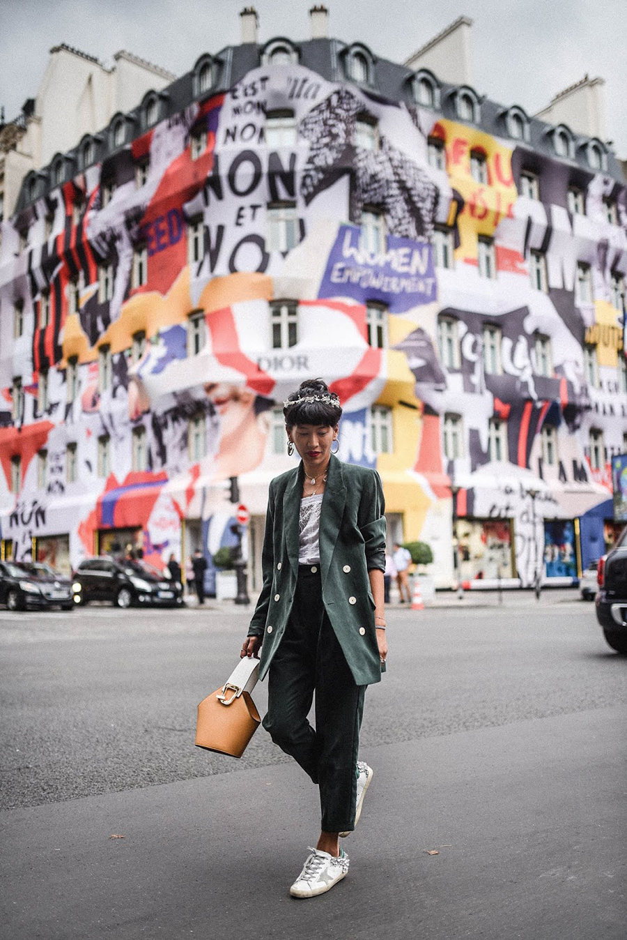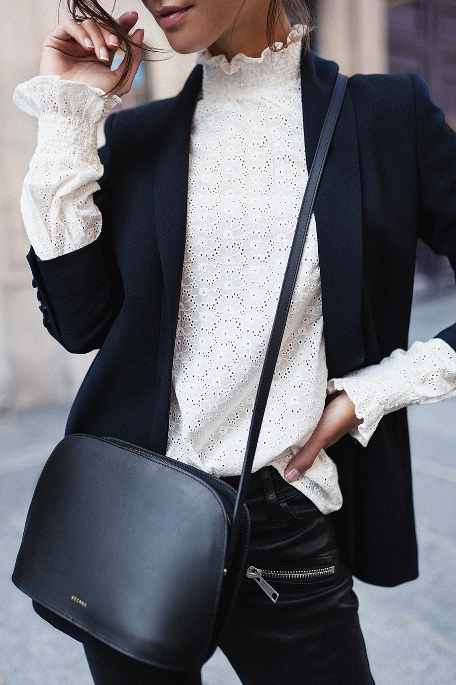 J’adore les looks un peu décalés de Zoé avec jeans ou t-shirts troués, sneakers et cheveux fous, mais j’avoue que cette tenue noir et blanc, très élégante lui va à ravir (et que dire de ce joli sac Victor… décidément, je suis faible face à la maroquinerie Sézane !).