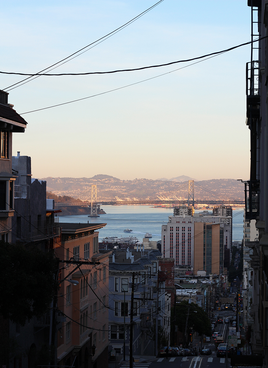 Je vous emmène aujourd’hui dans le joli quartier de Nob Hill, où le soleil commençait à se coucher à la fin de ce shooting… les lumières étaient magnifiques. Je profite des journées un peu plus fraiches de janvier pour porter mon manteau, qui jusqu’à présent, était plutôt resté dans notre dressing depuis mon arrivée !
