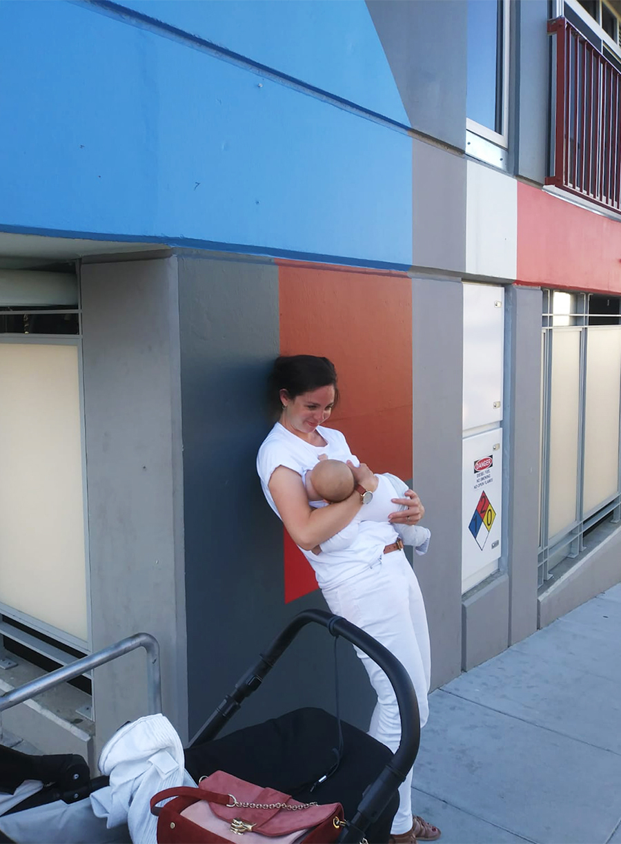 C’était vendredi dernier, j’étais partie de l’autre côté de la ville et j’avais décidé de rentrer en bus. Etant en pleine heure de pointe, les passagers ont commencé à s’accumuler, nous étions entassés les uns contre les autres… Notre bébé était dans son landau, il a commencé à pleurer, crier, de plus en plus fort. Je ne pouvais pas le prendre dans mes bras pour le consoler (trop dangereux au vu des collines à grimper et du le manque de place) et de toute manière, je savais quel était le problème : il avait faim… Le bus s’est arrêté, le chauffeur a coupé le moteur, j’ai pensé à un problème technique, j’ai patienté tant bien que mal mais les pleurs étaient de plus en plus forts, tous les regards étaient braqués sur moi. Ni une, ni deux, j’ai voulu sortir du bus (j’étais alors à plusieurs blocs de notre appartement), les passagers étaient si entassés que je ne pouvais pas bouger. J’ai senti les larmes monter, la colère et l’incompréhension aussi, voyant que personne ne bougeait devant mon désarroi. Après quelques minutes, j’ai réussi à sortir tant bien que mal, j’ai aussitôt mis le frein de la poussette, j’ai déboutonné mon t-shirt et j’ai nourri notre bébé, sur le trottoir, à un angle de rue, en essayant de nous protéger du vent.