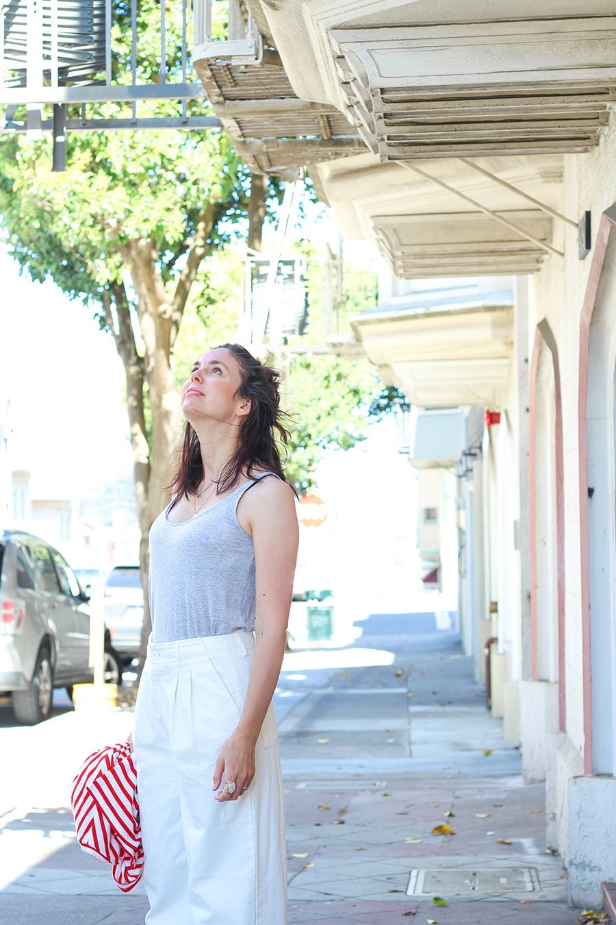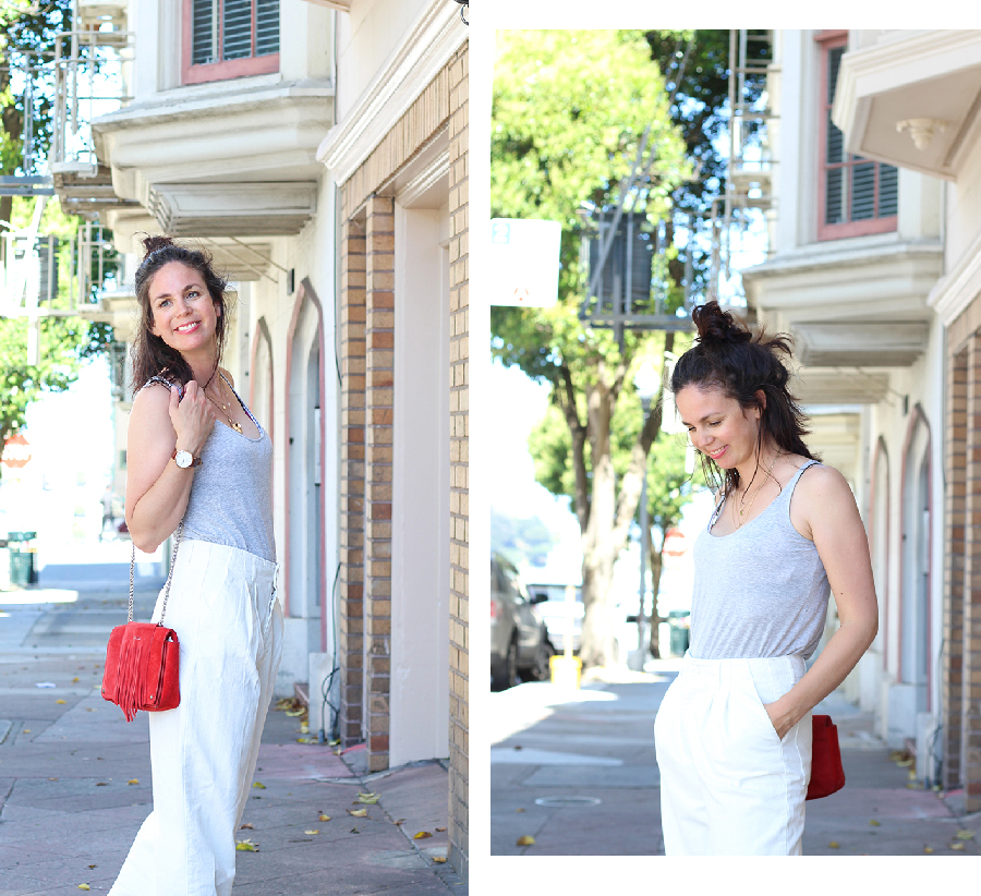 Mais revenons au look du jour : je me suis lancée pendant les soldes, j’ai acheté mon premier pantalon taille haute.