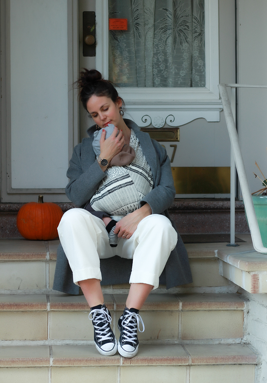 Les températures n’étant pas les mêmes qu’à San Francisco, nous avions prévu pour lui deux pulls et pantalons bien chauds, une combinaison pour l’extérieur et des tenues plus légères pour rester à l’appartement. J’avais aussi mon écharpe pour le couvrir à l’extérieur en soirée.
