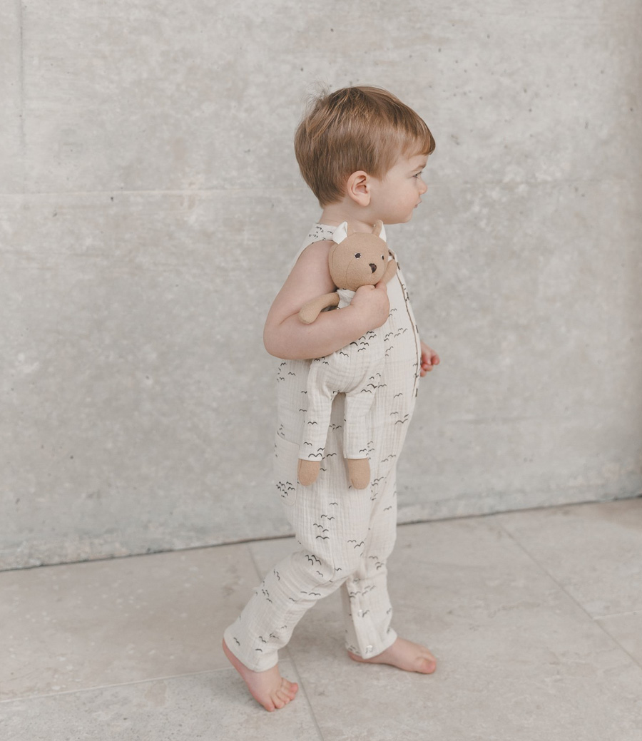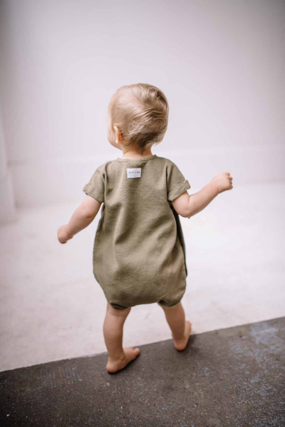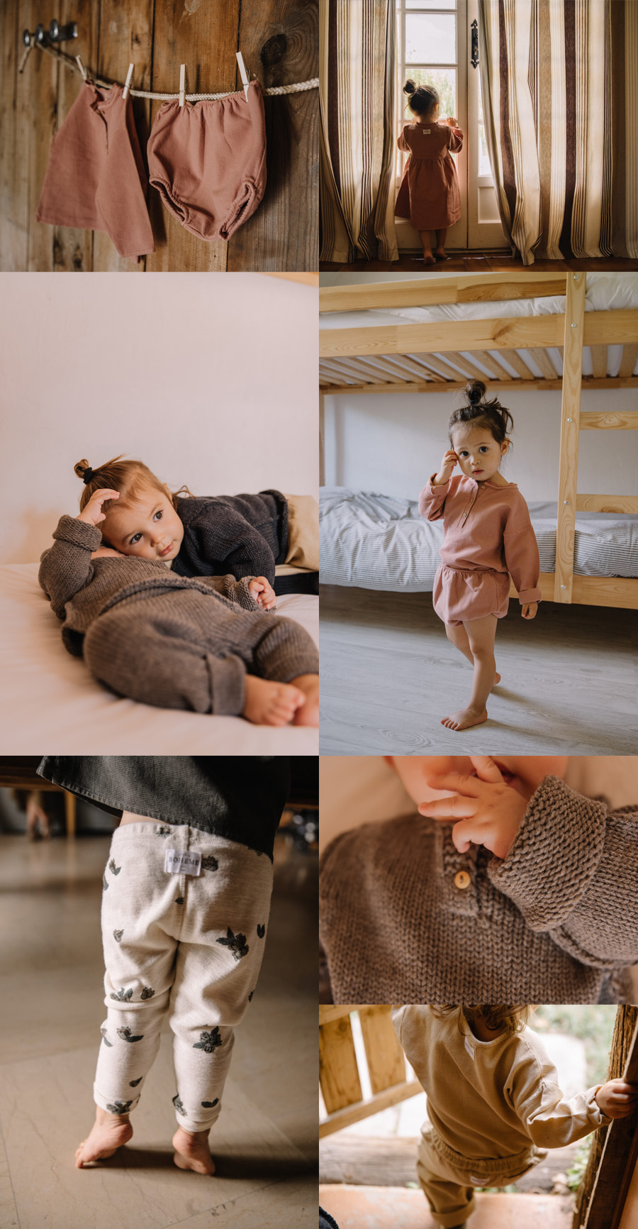 // Tiny Trove est une marque que j’ai découverte sur Instagram, et j’adore le côté très épuré de leurs vêtements. Je privilégie les coupes un peu loose ou au contraire moulantes, mais toujours dans des matières souples, pour qu’il soit libre de ses mouvements.