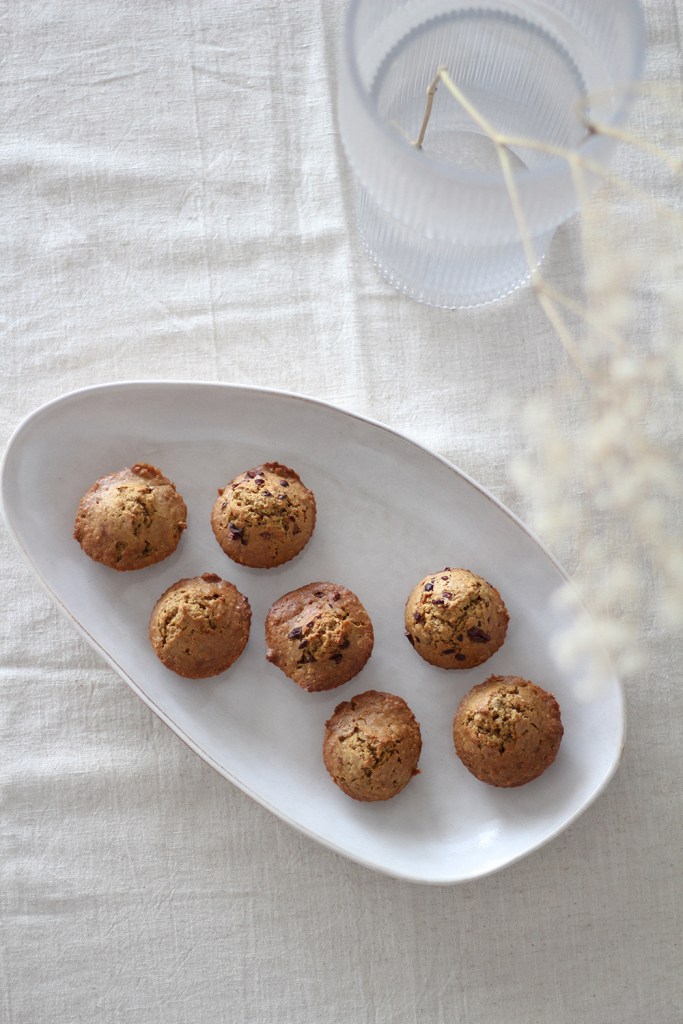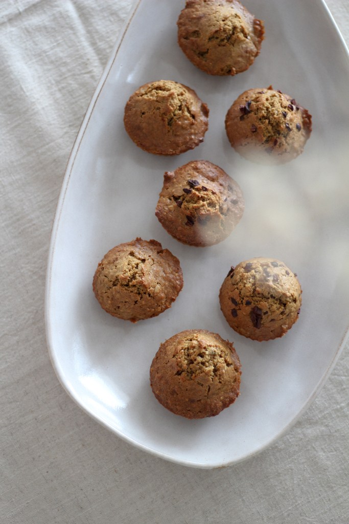 Selon votre convenance, ajoutez des graines de lin, des noisettes hachées, des fruits secs (abricots, cranberries, raisins…). Pour cette fournée, j’ai par exemple mis quelques copeaux de cacao cru sur le dessus de certains muffins.