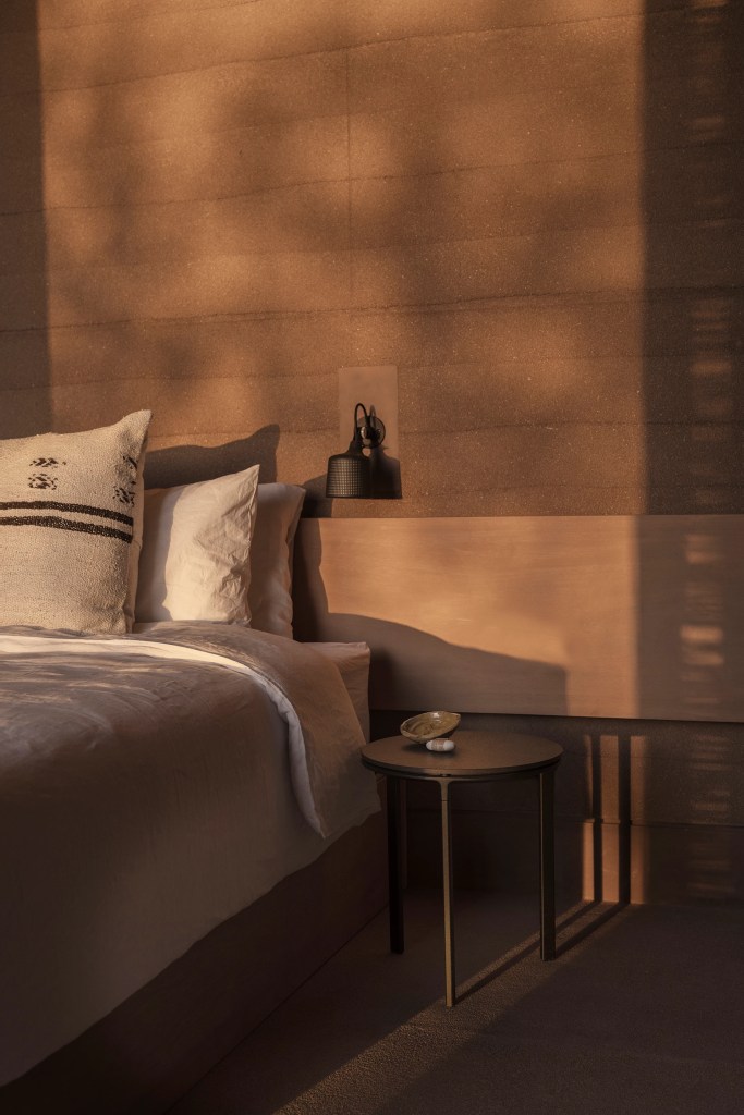 Laissés à l’état brut, ces murs robustes façonnent l’extérieur comme l’intérieur du bâtiment.
